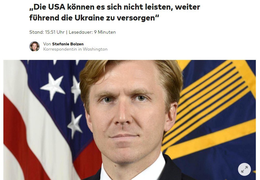 «США не могут себе позволить продолжать снабжать Украину в качестве лидера, у нас самих не хватает оружия и денег, мы отстаём от Азии и Китая», — продолжает Колби, «вот почему Европа — и особенно Германия — должна взять на себя инициативу».