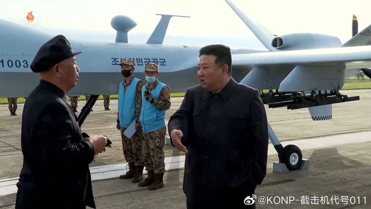 Ким Чен Ын осматривает северокорейские копии американских беспилотников RQ-4 Global Hawk и MQ-9 Reaper.