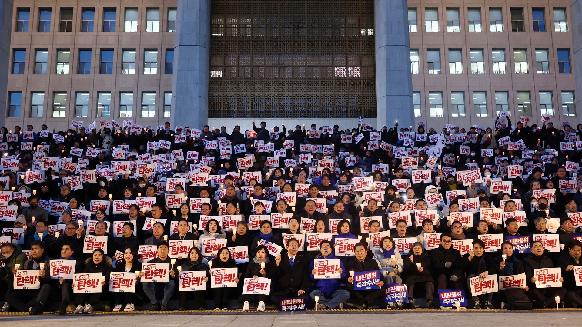 They are gathered on the steps aghast at President Yoon Suk Yeol's audacious move to impose martial law.