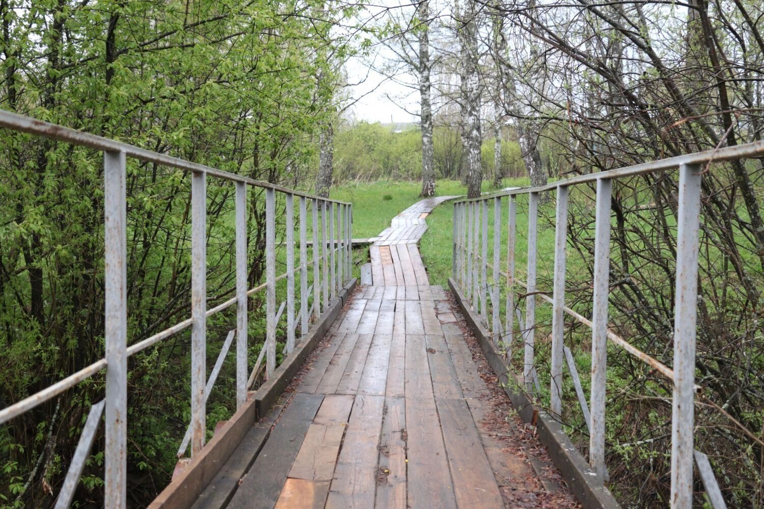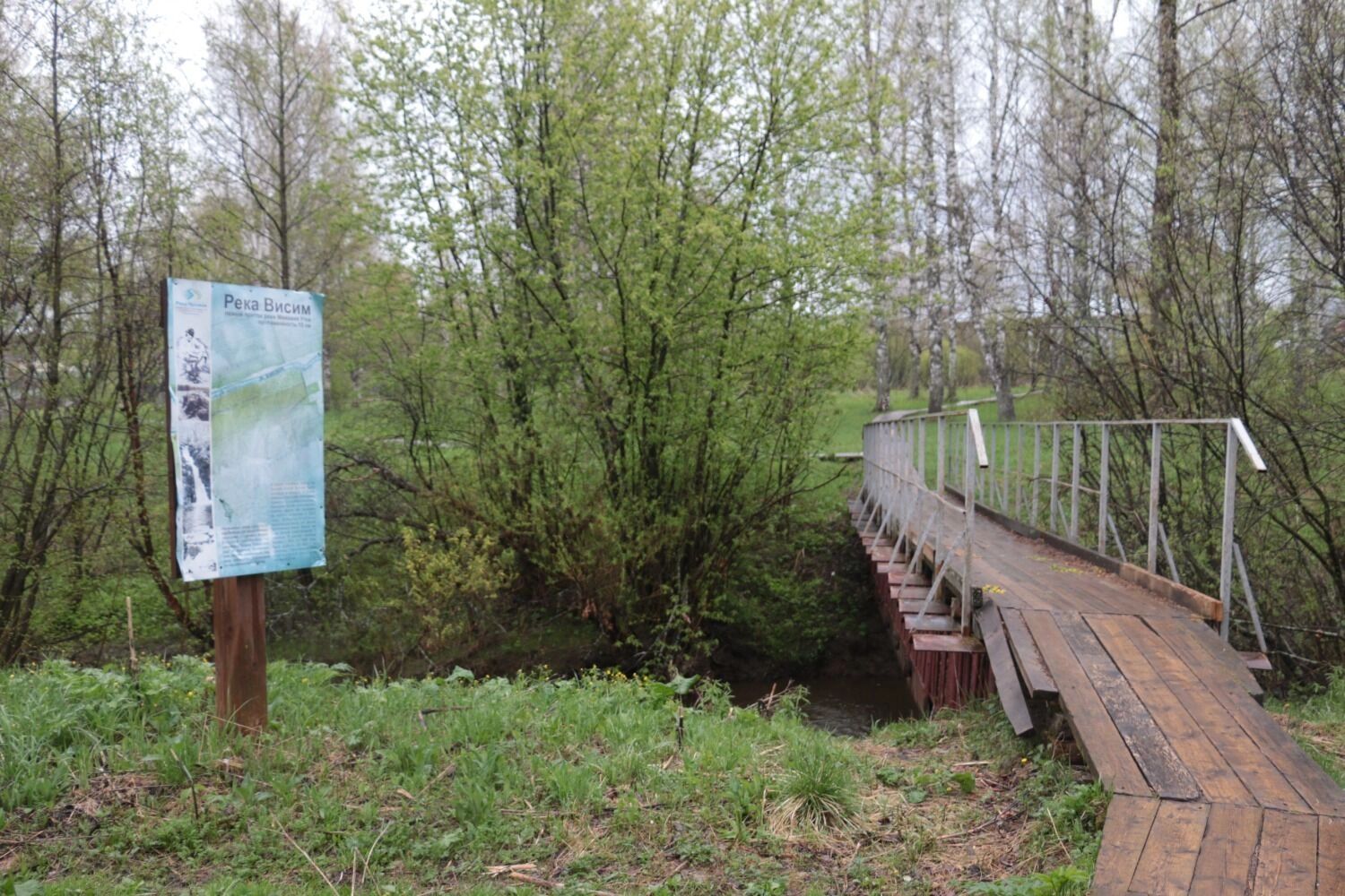 Если спуститься от мемориалов и церкви к школе, то вы увидите деревянную тропу, ведущую к мосту. Поселок опутывает река Висим. Название произошло от мансийского «висуум», что переводится как ручей. Здесь царит тишина и безмятежность, чистый воздух, трель птиц и полевые цветы — ничего лишнего.