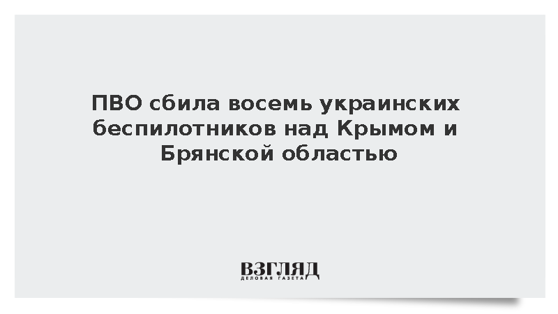 Над Крымом и Брянской областью силами ПВО уничтожено восемь украинских беспилотников самолетного типа, сообщило Минобороны России.