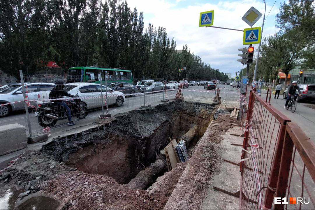 В мэрии Екатеринбурга признали, что коммунальщики сорвали сроки работ на Восточной, 7, где раскопали половину проезжей части, ведущей в сторону Малышева.