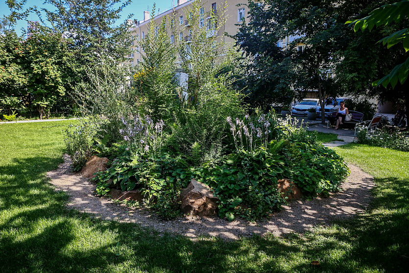 «Из многолетников очень красиво растут барбарис, спирея, альпийская сосна, ромашки, алиссум, лилии и, конечно, наши любимые хосты. Поддерживать всё это великолепие нам помогает центр „Горожане“ под руководством Алексея Никитина», — пояснила Маргарита Поскотина.