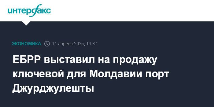 Москва. 14 апреля. INTERFAX.RU - Европейский банк реконструкции и развития объявил международный тендер на поиск нового инвестора для ключевого молдавского порта - Международного свободного порта Джурджулешты.