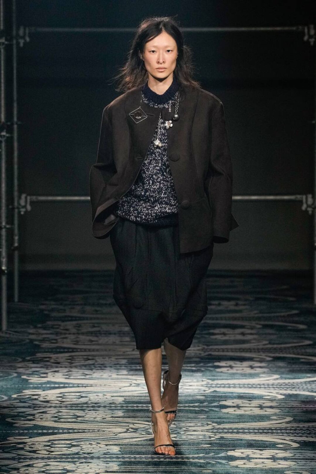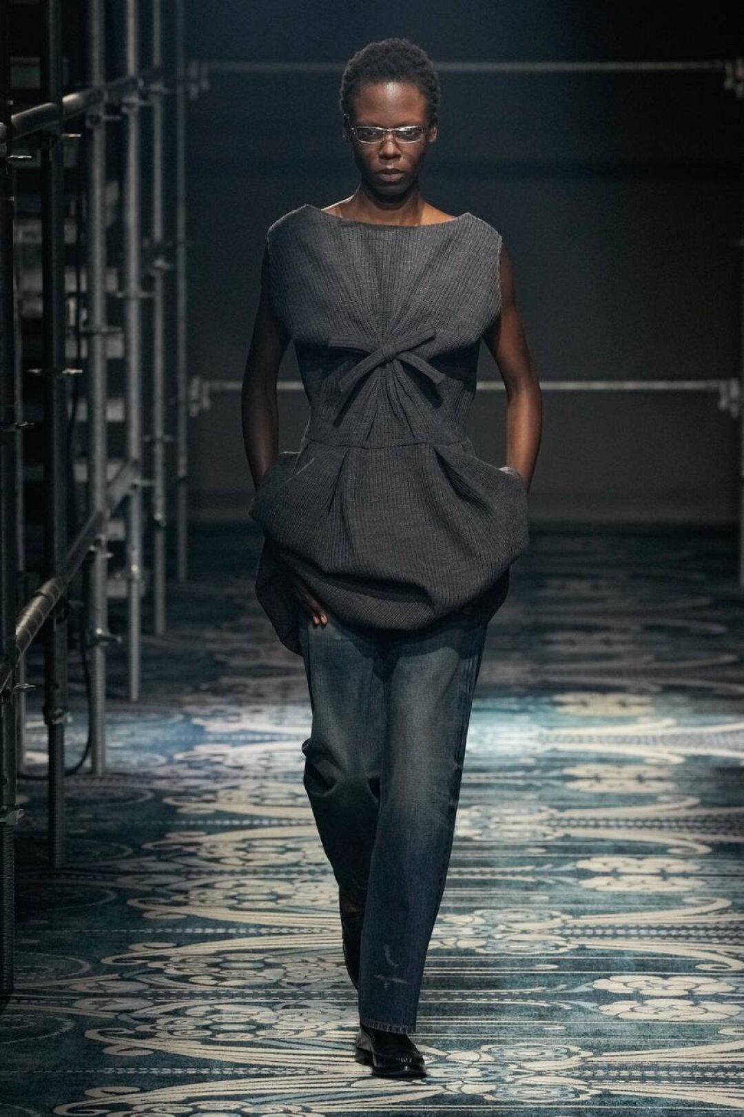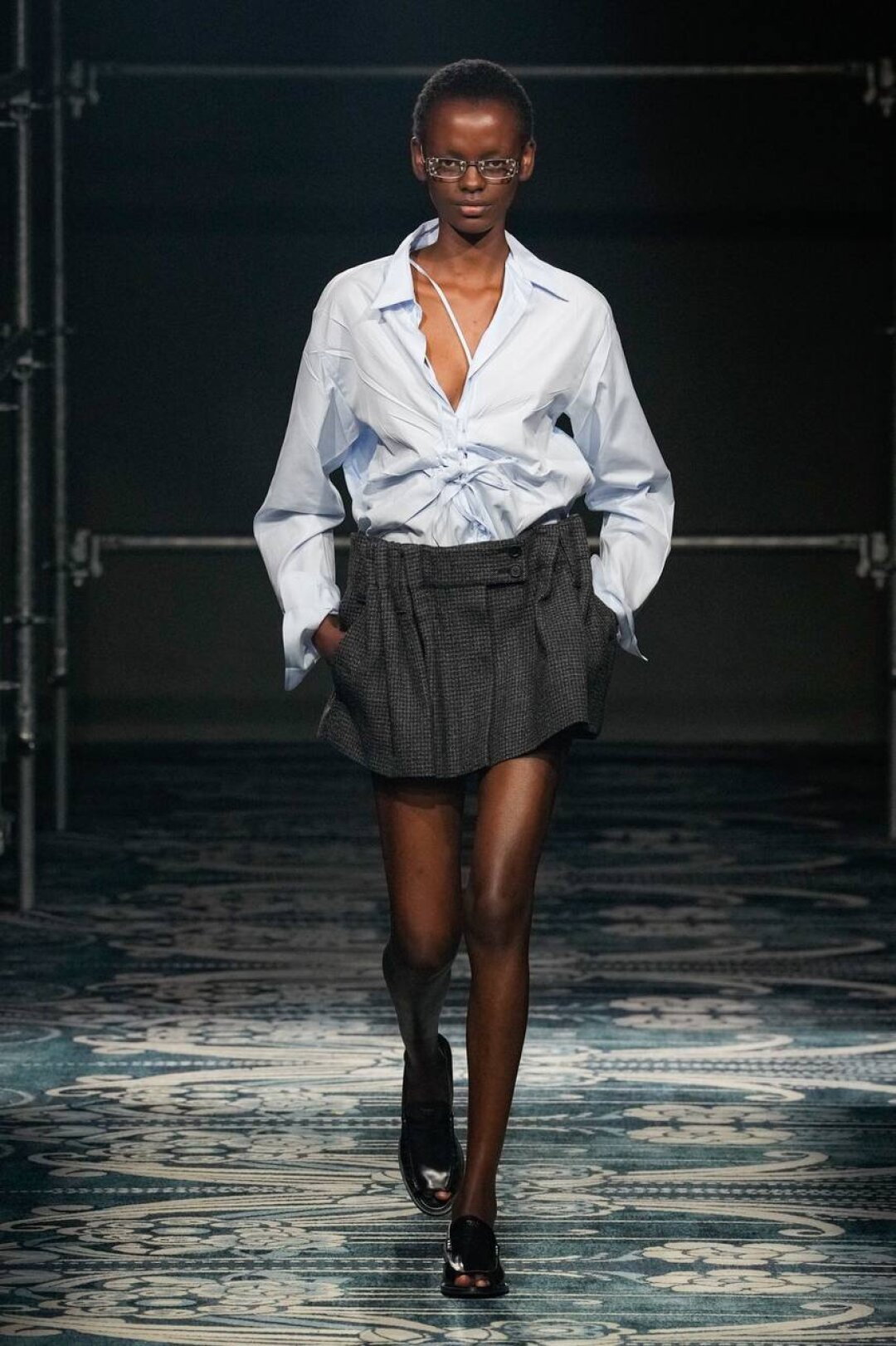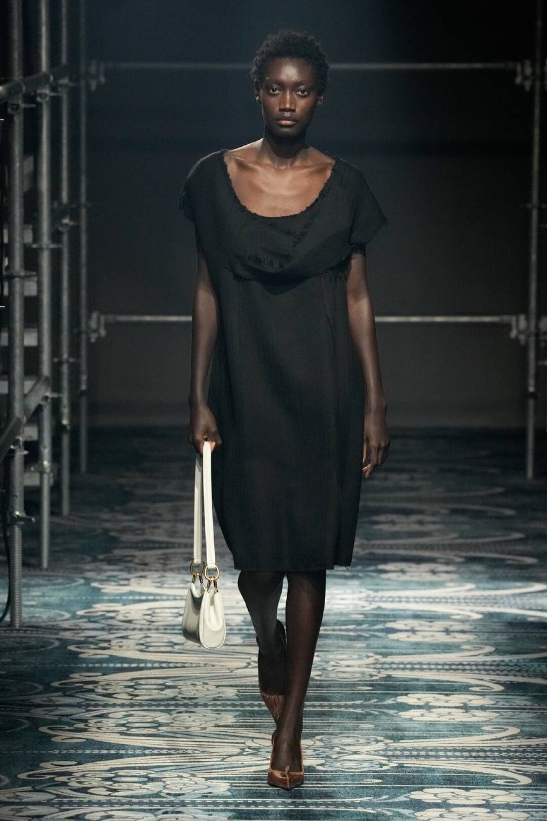 В следующем сезоне дизайн-дуэт нашего сердца советует не относиться к себе (и моде!) слишком серьезно и, вообще, наконец расслабиться. Без тени сомнения выгуливаем не подошедшее по размеру, но подошедшее под настроение цветочное платье из бабулиного сундука. То же касается маскулинного ретро-пальто, которое в два счета сажаем по фигуре с помощью тонкого ремешка. Говорим «да» пижамам даже в условиях будничных планерок — для этих случаев Миучча и Раф отшили варианты, мимикрирующие под солидные двойки (fake it till you make it!). Игнорируем условности и носим мех во время мокрого снега и дождя в виде пушистых воротников на неоново-зеленых дождевиках (brat fall!) и шуб, покрытых пленкой. А еще было замечено идеальное комбо для неустойчивого петербургского лета — миксуем акварельный купальник со старомодной миди-юбкой из шерсти (ситуация: одной ногой в отпуске!).