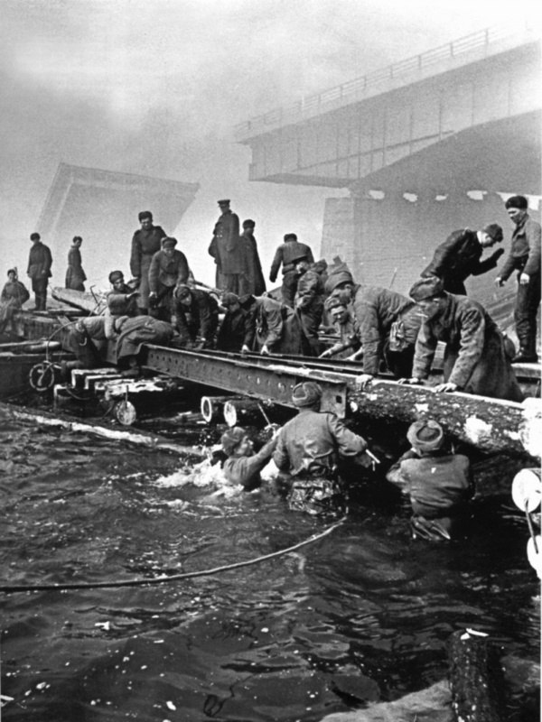 На фото - советские войска форсируют Одер, наводя переправу для техники.