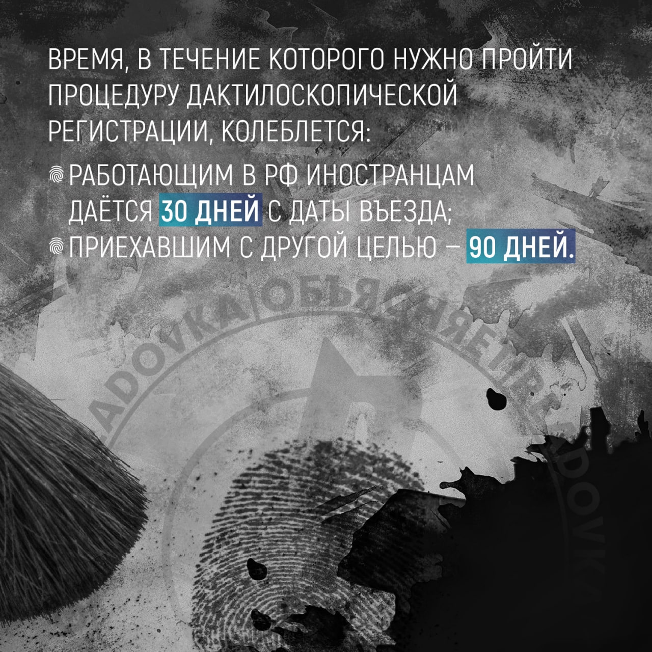 Сейчас ни иностранные рабочие, ни прочие гости РФ, остающиеся на территории нашей страны на срок дольше 90 дней, не обязаны немедленно проходить процедуру дактилоскопии. Проблема в том, что многие мигранты добросовестно не выполняют требования законодательства и не «сдают пальчики» в заявленные сроки.