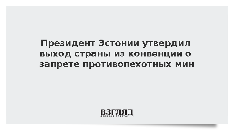 Президент Эстонии Алар Карис утвердил решение о выходе страны из Оттавской конвенции, запрещающей использование противопехотных мин, передает ТАСС.