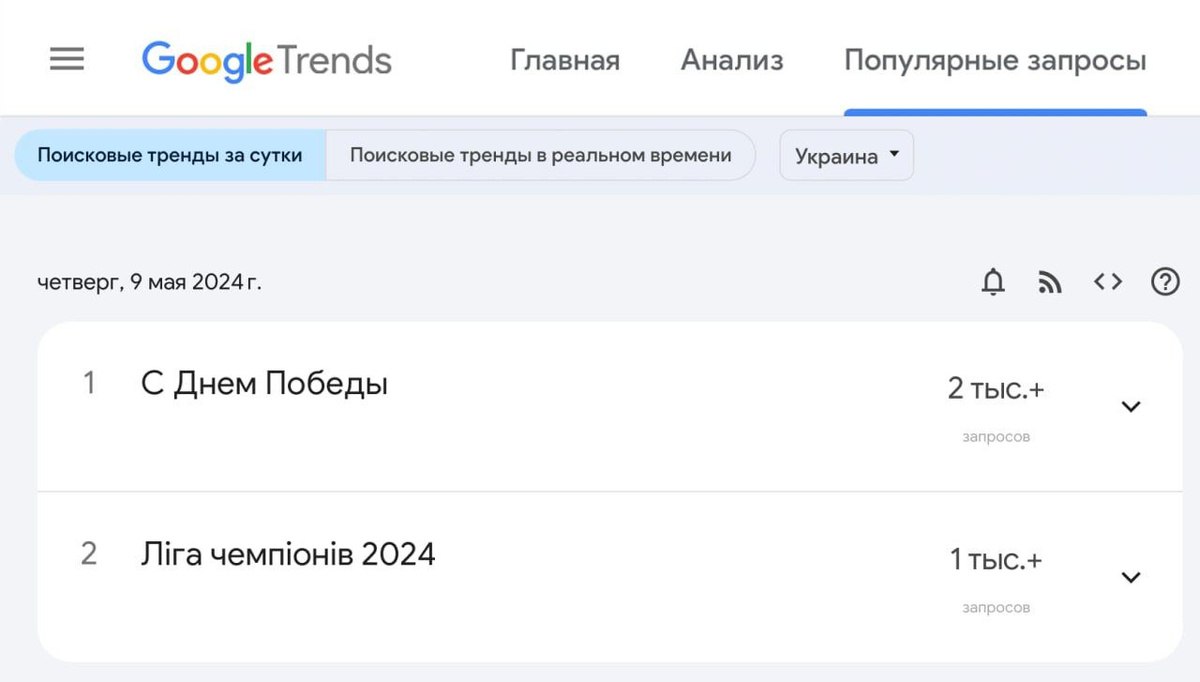 Запрос «С Днём Победы» — уверенно держит первую строчку в Google Trends на Украине