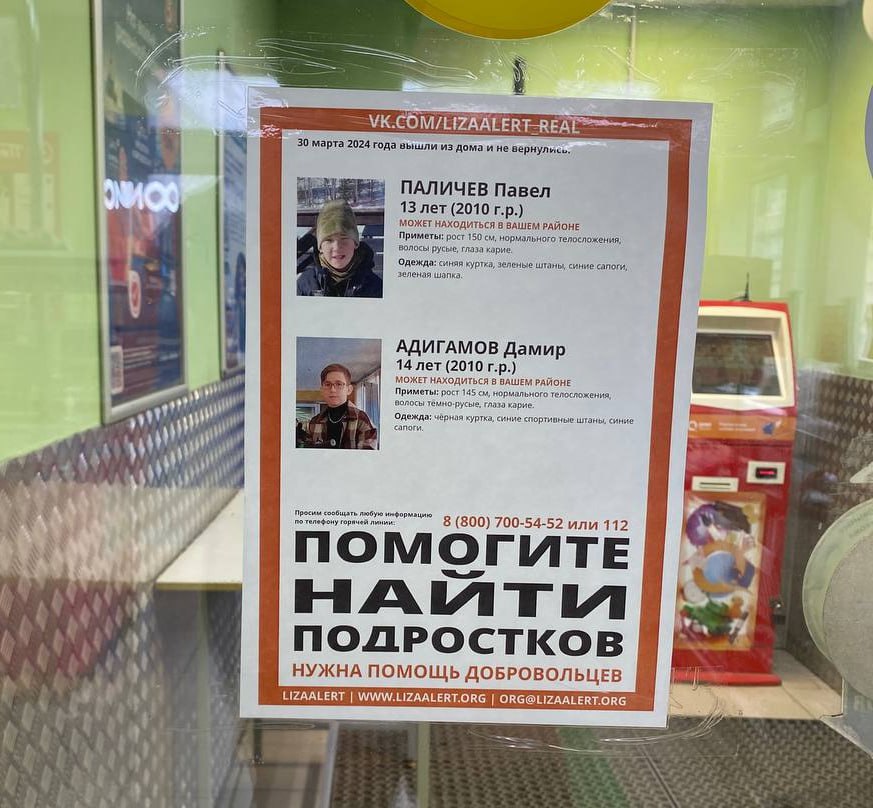 13-летний Павел Паличев и 14-летний Дамир Адигамов вышли из дома 30 марта и не вернулись. Более трех недели их ищут сотни человек — спасатели, полицейские, волонтеры.