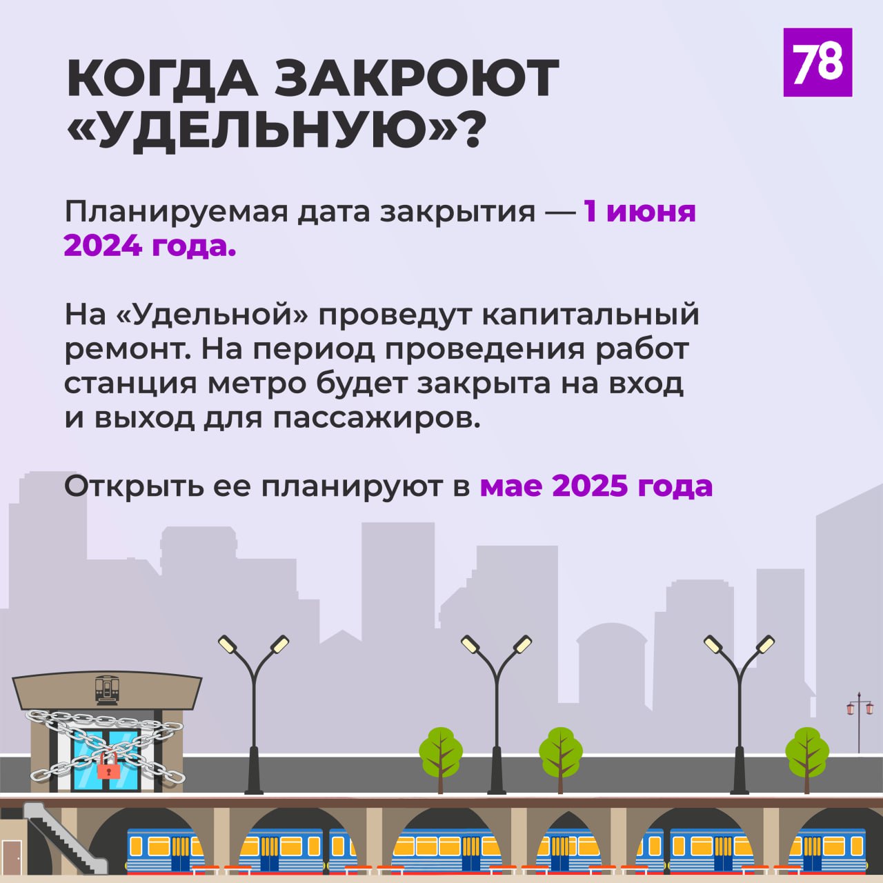 Ожидалось, что станцию метро «Удельная» закроют на капитальный ремонт в марте. Сроки сдвинулись, новая планируемая дата закрытия — 1 июня 2024 года. Рассказал 👾 председатель Комитета по транспорту Санкт-Петербурга Валентин Енокаев.