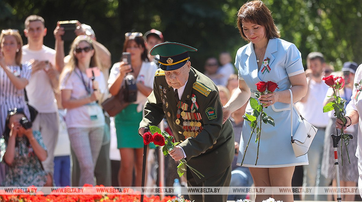Дань памяти погибшим за освобождение Гродно отдали руководители области и города, представители силовых структур, предприятий и организаций, учреждений образования, священнослужители, молодежь. Официальная церемония завершилась, а люди продолжают идти с цветами.