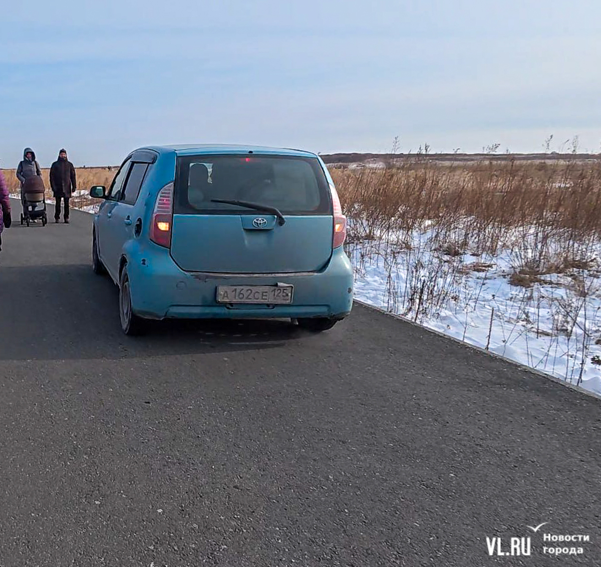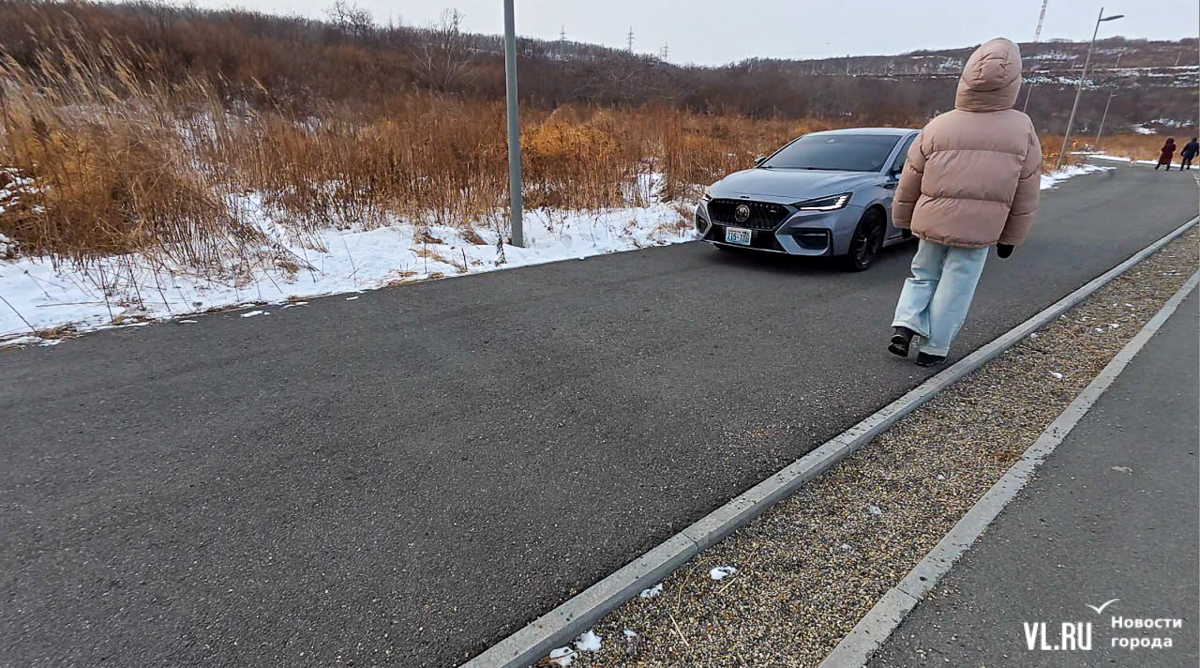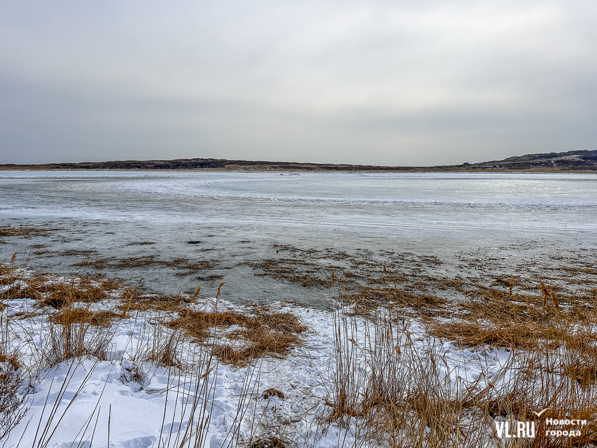 Пешеходная дорожка ведёт не к озеру, а заканчивается тупиком в поле. Дрифтеры едут по нему, их следы видно по примятой траве и на снегу, а в поле и по берегам водоёма валяются автомобильные покрышки. При этом выезд на лёд в Приморье запрещён – прокуратура заинтересовалась даже соревнованиями по ледовому ралли в Угловом.