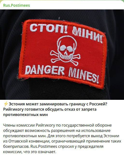 В Эстонии обсуждают выход из Оттавской конвенции о запрете противопехотных мин, чтобы заминировать ими часть своей территории со стороны России.