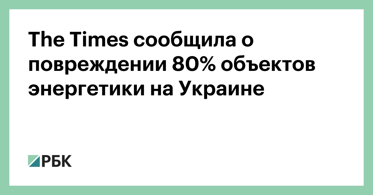 На Украине в результате атак с воздуха повреждено или разрушено около 80% объектов энергетической инфраструктуры, сообщает The Times. Без их надлежащей защиты страну ждет тяжелая зима.