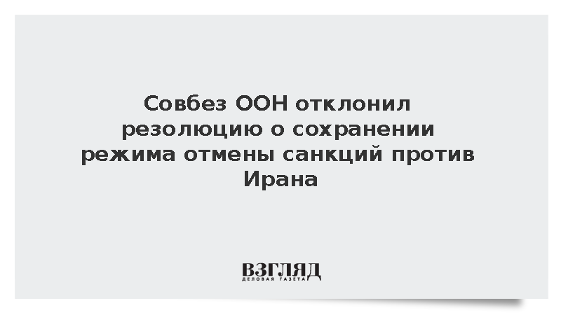 Совет Безопасности ООН отклонил проект резолюции о сохранении отмены санкций против Ирана, передает РИА «Новости».