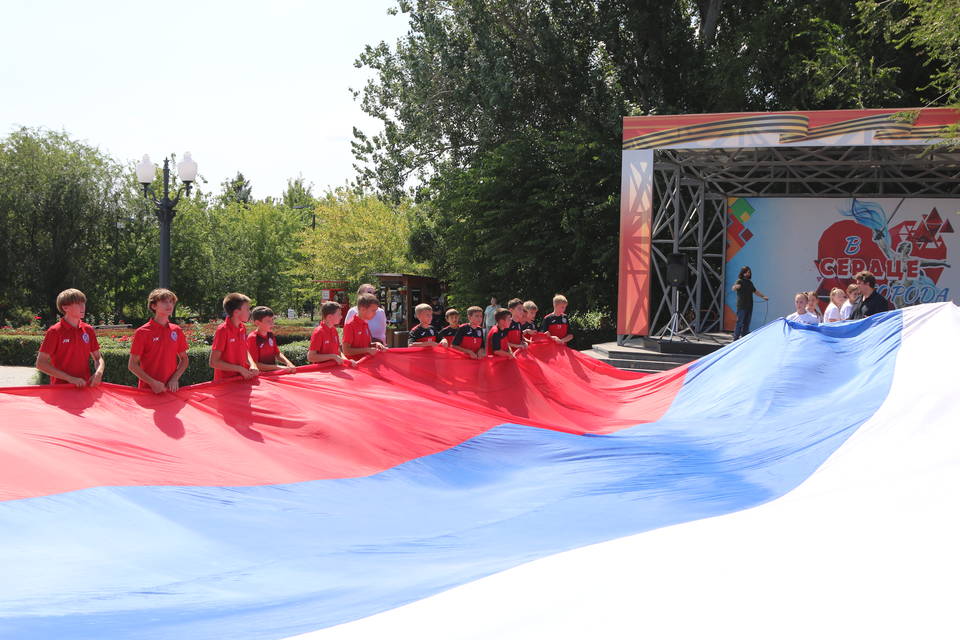 В честь праздника в центре Волгограда у фонтана «Искусство» прошла красивая патриотическая акция – дети, воспитанники кадетских классов, юные спортсмены, развернули большой флаг России. Также в честь праздника состоялся концерт.