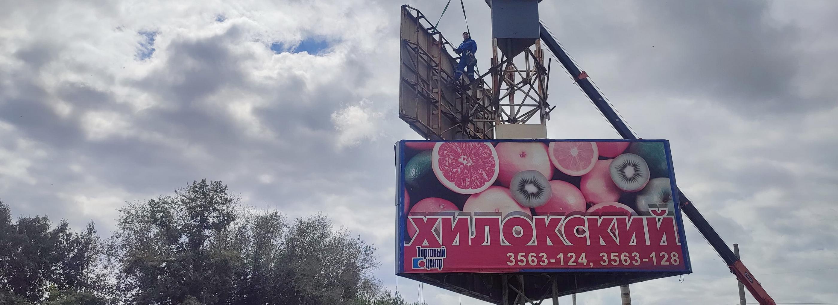 «Трёхсторонний щит рекламирует ТЦ „Хилокский“ на трёх сторонах. Мы договорились с ООО „Рекламные технологии“, которому принадлежит объект, выполнить демонтаж. Затем эту площадку перед Хилокским микрорайоном планируется благоустроить и установить въездную стелу», — пояснил Алексей Ярик.