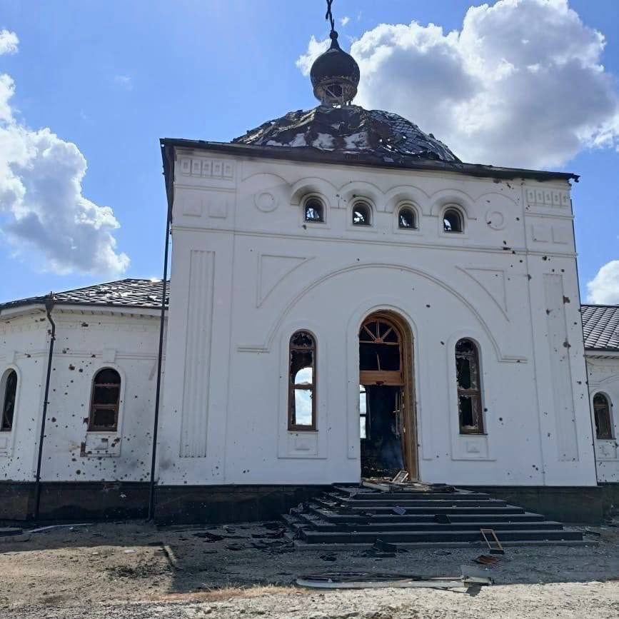 Главный собор мужского монастыря недалеко от города Суджи Курской области разбит и сожжён в ходе обстрелов ВСУ.