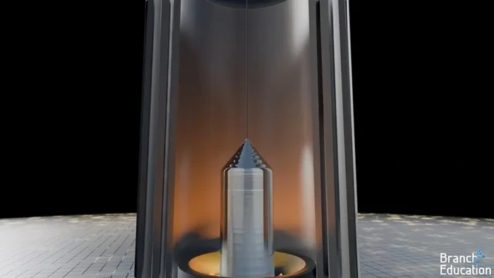 После очистки кремний расплавляется, и из него «выращивается» кристалл формы цилиндра.