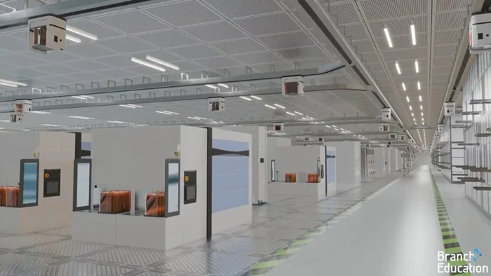 Внутри производственной зоны поддерживается практически стерильная чистота, так как попадание пыли на будущие чипы непременно грозит их порчей. Здесь находятся сотни различных установок для работы с кремниевыми пластинами. Каждая из них имеет размер, схожий с фургоном или автобусом.