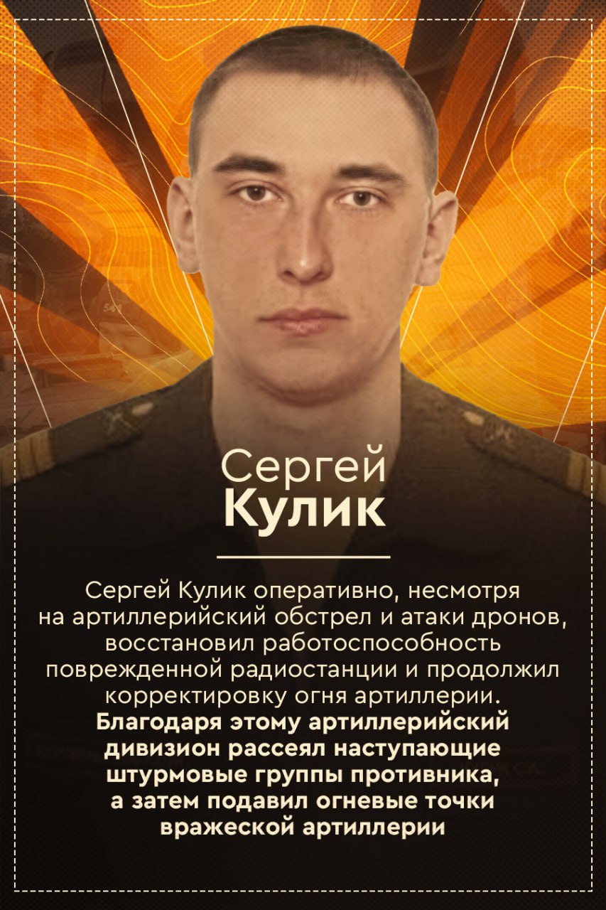 Сергей Кулик оперативно, несмотря на артиллерийский обстрел и атаки дронов, восстановил работоспособность поврежденной радиостанции и продолжил корректировку огня артиллерии. Благодаря этому артиллерийский дивизион рассеял наступающие штурмовые группы противника, а затем подавил огневые точки вражеской артиллерии.