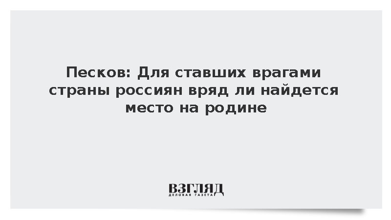 Песков: Для ставших врагами страны россиян вряд ли найдется место на родине