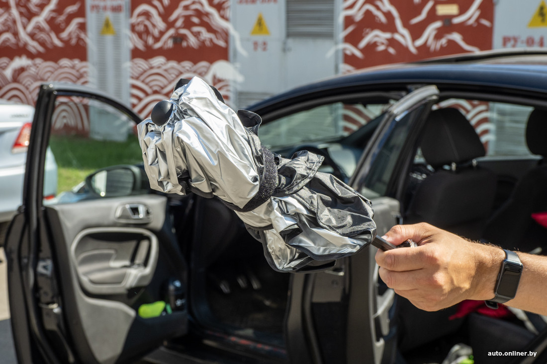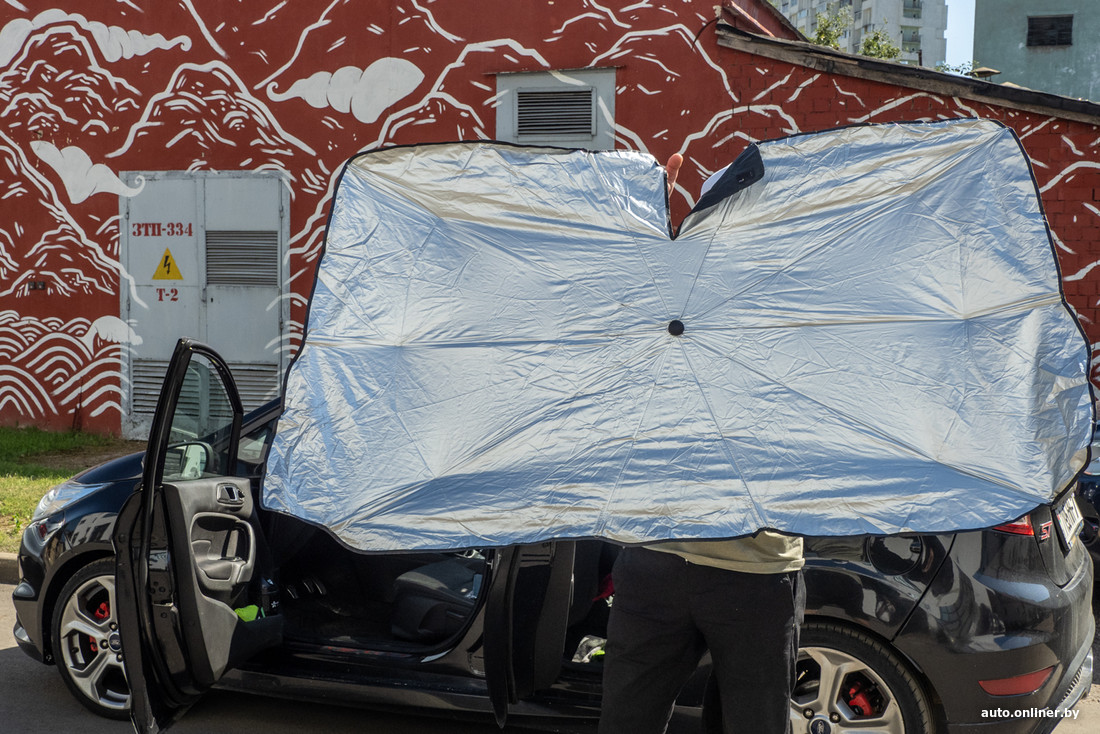 Все же вынуждены оставить машину на солнце? Можно несколько снизить нагрев если не всего салона, то хотя бы передней панели и рулевого колеса, используя специальный светоотражающий экран. Некоторые водители устанавливают его не изнутри, а снаружи, и в этом есть своя логика: солнечные лучи будут отражаться не доходя до стекла, и оно будет меньше греться.