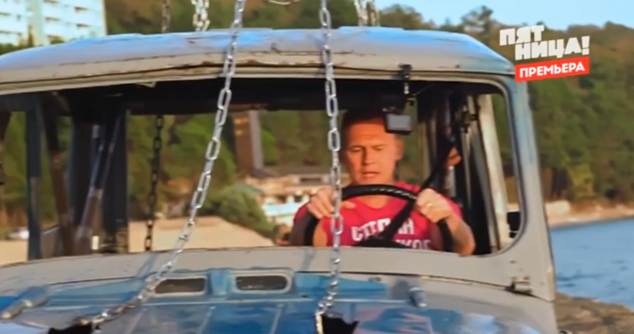 Следующее испытание — полностью погрузиться под воду, пристегнутым в автомобиле ремнем. Когда воздух заканчивался, нужно было самому отстегнуться и вынырнуть. Здесь Степан снова уделал всех: продержался 1 минуту 7 секунд.