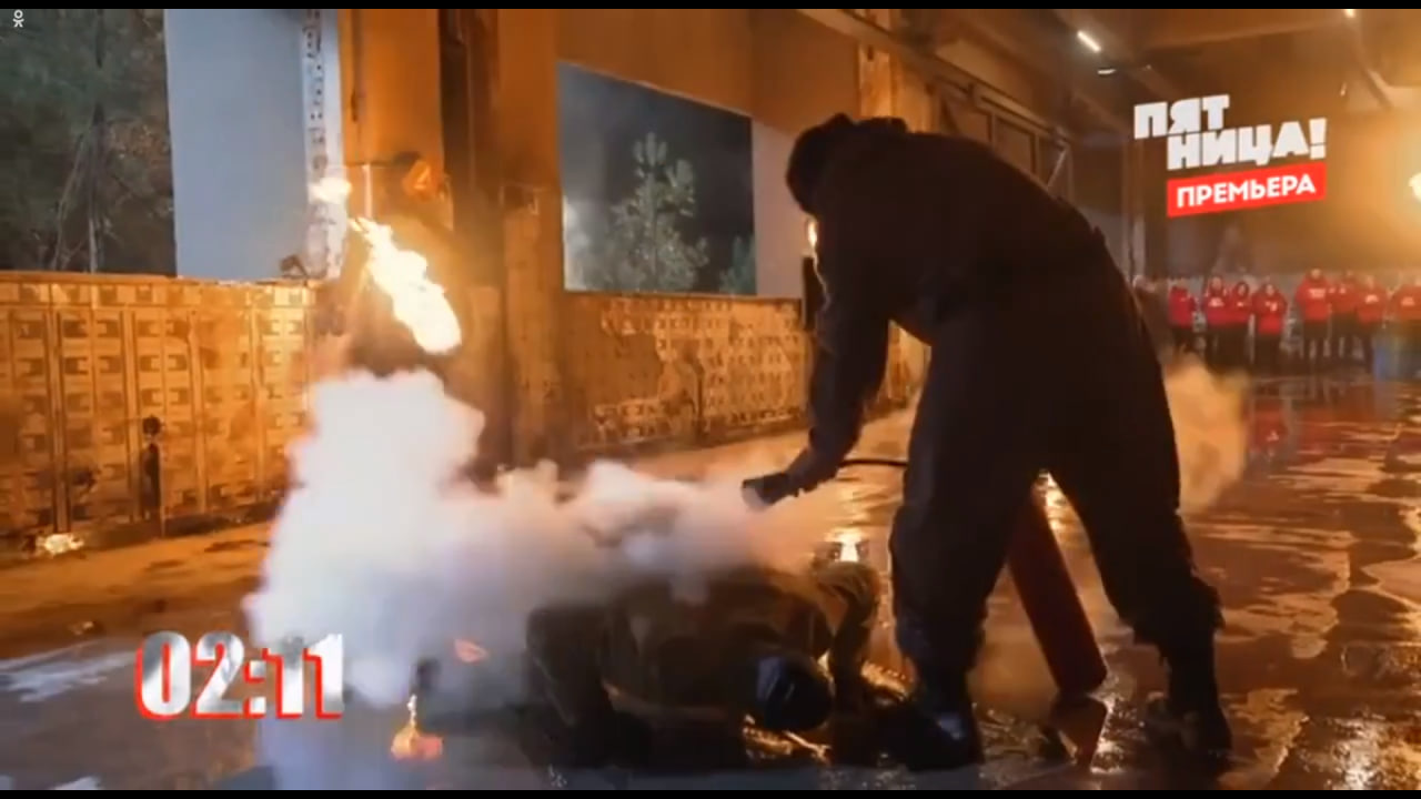 Далее смельчакам предстояло побороться со страхом огня и проявить самообладание. Нужно было зажечь собой шесть фигур быстрее соперника. Меньщиков справился за 2 минуты 11 секунд — и это огненный результат.