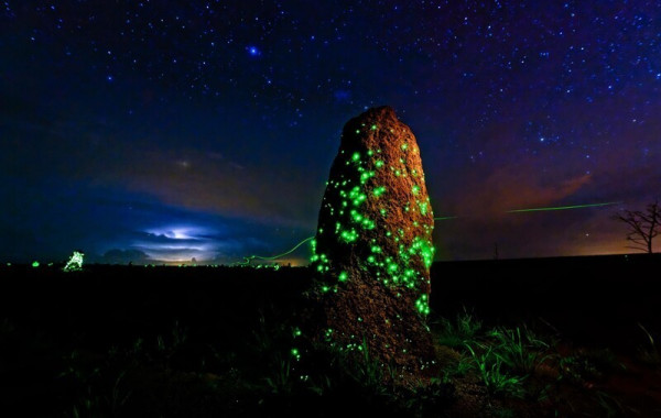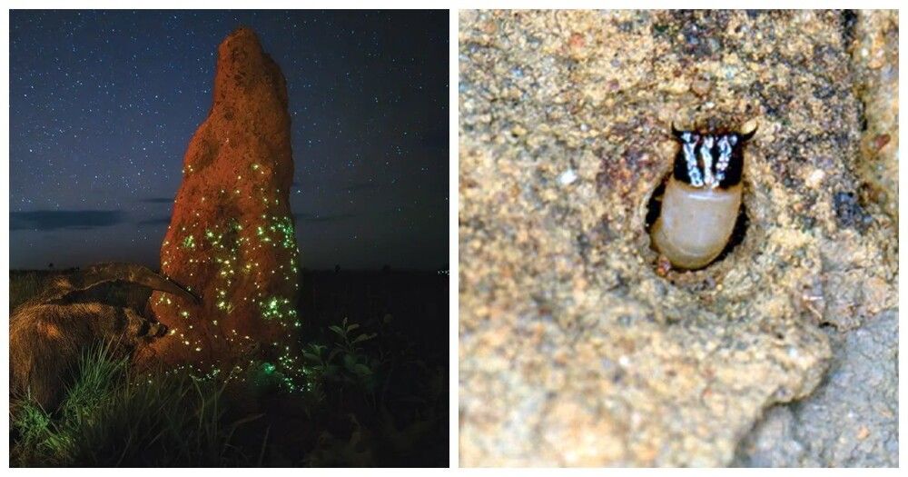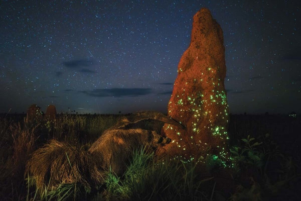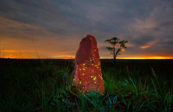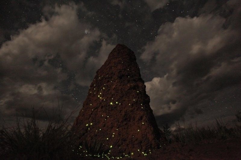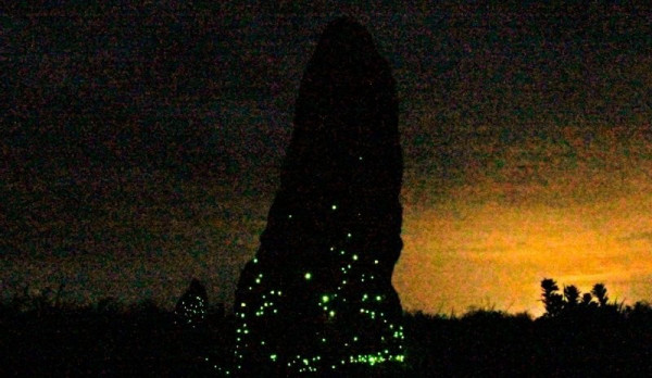 Эти уникальные термитники могут вырастать до солидных размеров: их диаметр достигает 30 метров, а высота - 7 и более метров. Они служат не только домом, но и столовой для сотен светящихся личинок жука. Ночью термитные курганы выглядят так, будто они окутаны рождественскими огнями.