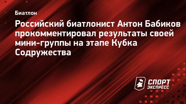 Российский биатлонист Антон Бабиков прокомментировал для «СЭ» результаты своей мини-группы на этапе Кубка Содружества в Сочи. В межсезонье Бабиков, Александр Логинов и Александр Поварницын ушли на самоподготовку. В спринте на Кубке Содружества Поварницын завоевал серебро, Логинов стал пятым, а Бабиков — десятым. В гонке преследования Логинов не вышел на старт, а Бабиков и Поварницын заняли третье и четвертое места соответсвенно.