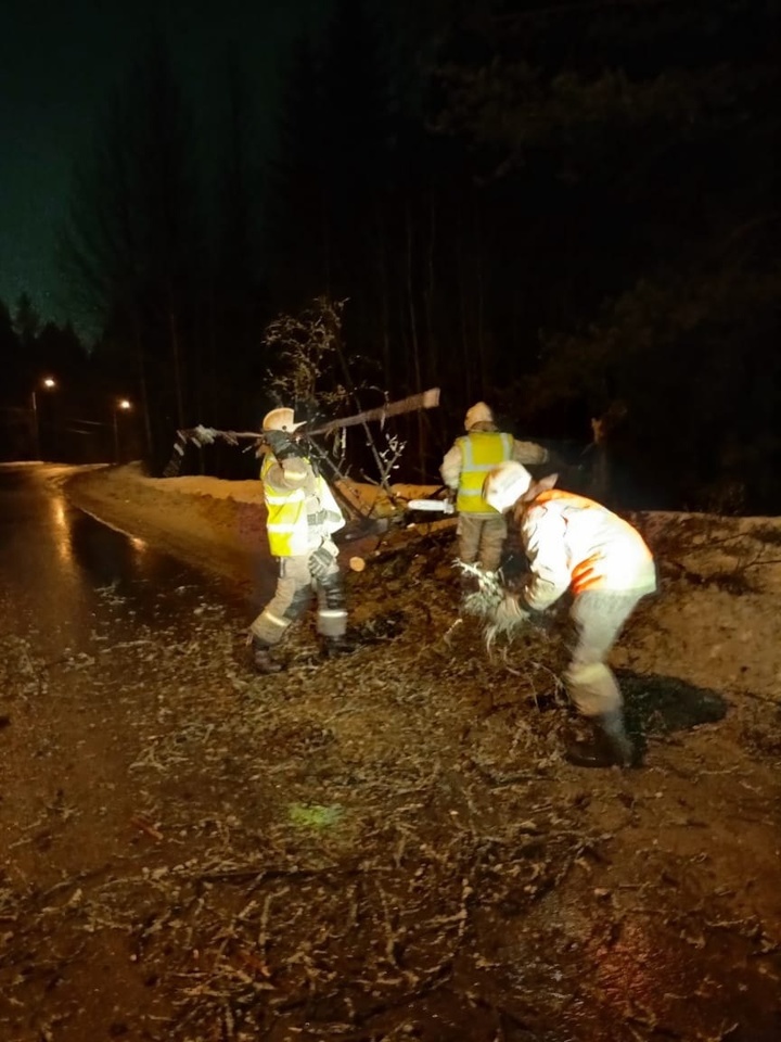 Как сообщили пожарные-спасатели ПЧ-75 в Соломенном, в воскресенье поздно вечером, 7 апреля в 23.16, сотрудники выезжали на помощь населению. На Сломенское шоссе ветер повалил огромное дерево, которое перекрыло проезд.