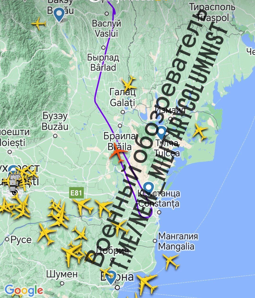 ❗️Над Румынией появился самолёт радиоэлектронной разведки RC-135W Rivet Joint Королевских ВВС Великобритании.