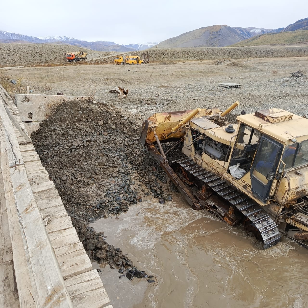 Сотрудники ЖКХ Кош-Агачского района провели работы по укреплению моста через реку Чуя.