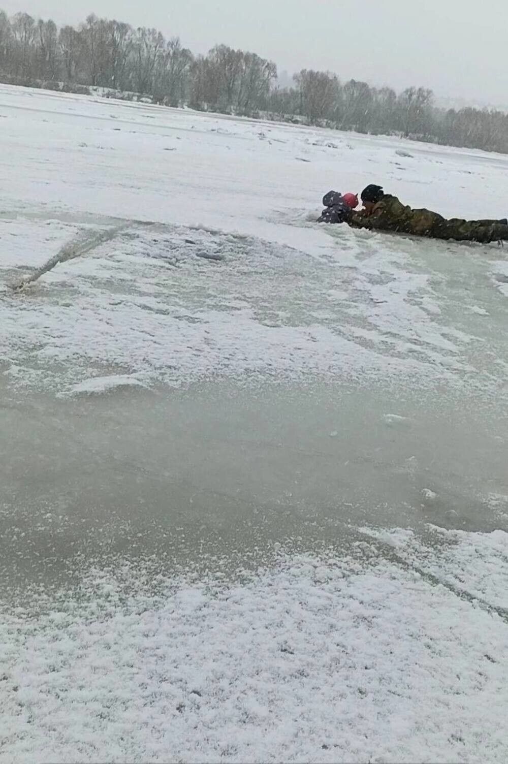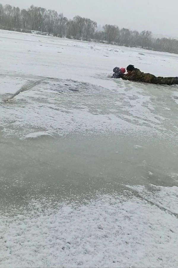 Ребёнок выбежал на подтаявший лёд и чуть не пошёл ко дну.