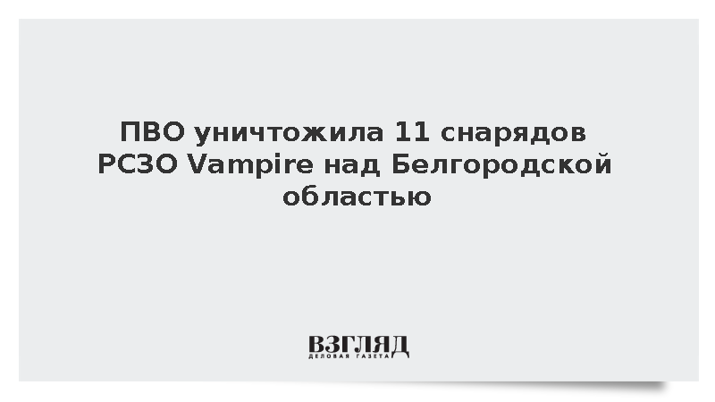 Российские средства ПВО уничтожили 11 снарядов РСЗО RM-70 Vampire («Вампир») над территорией Белгородской области.