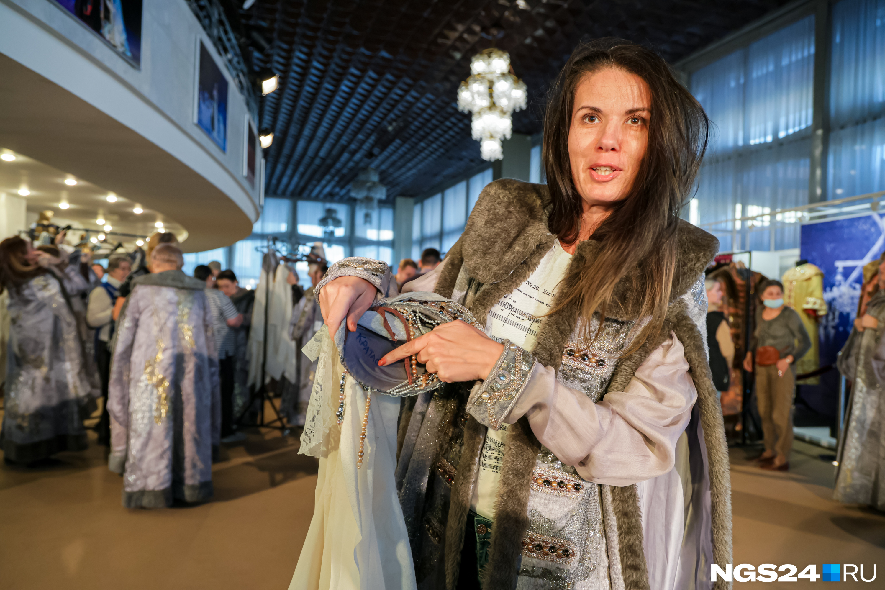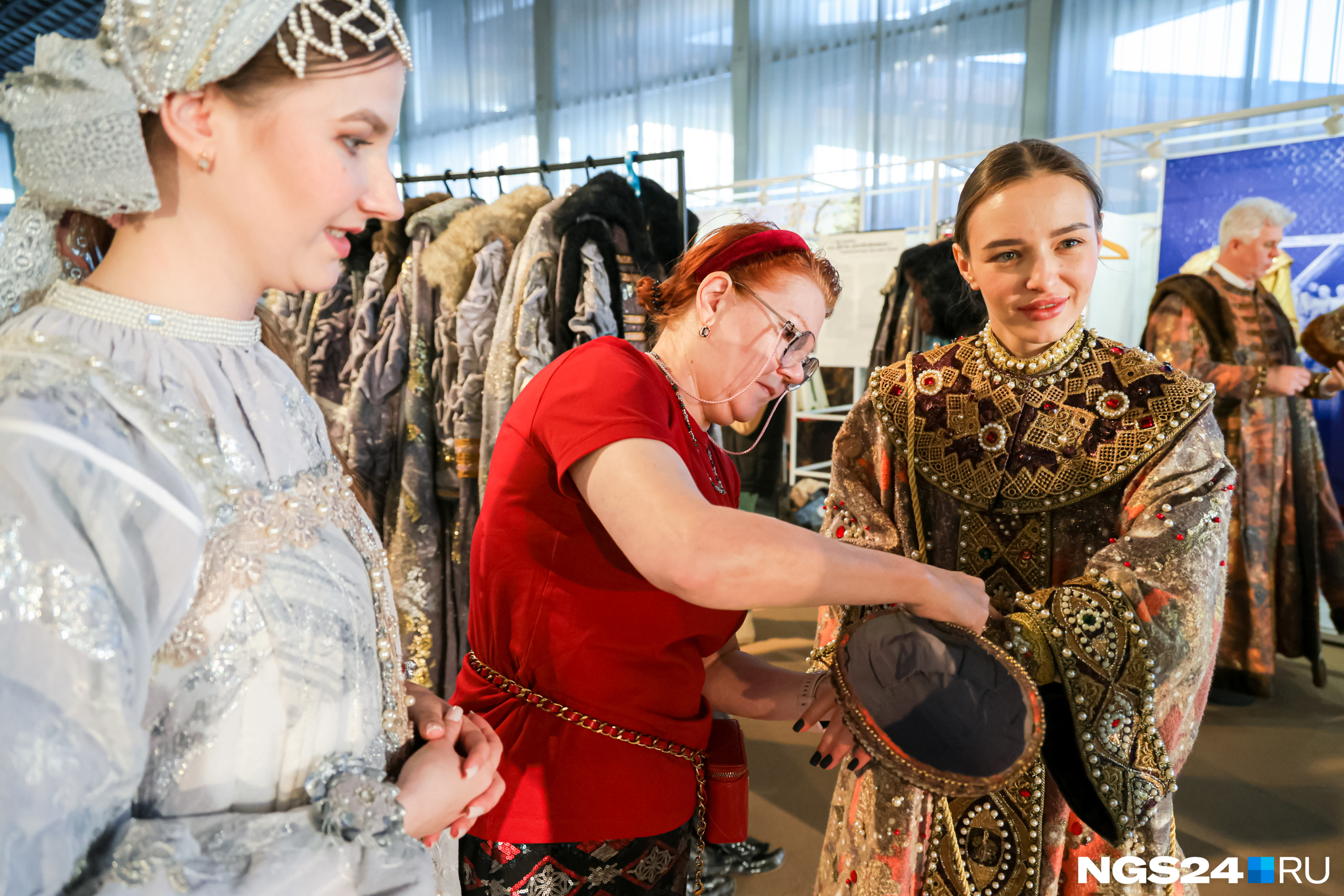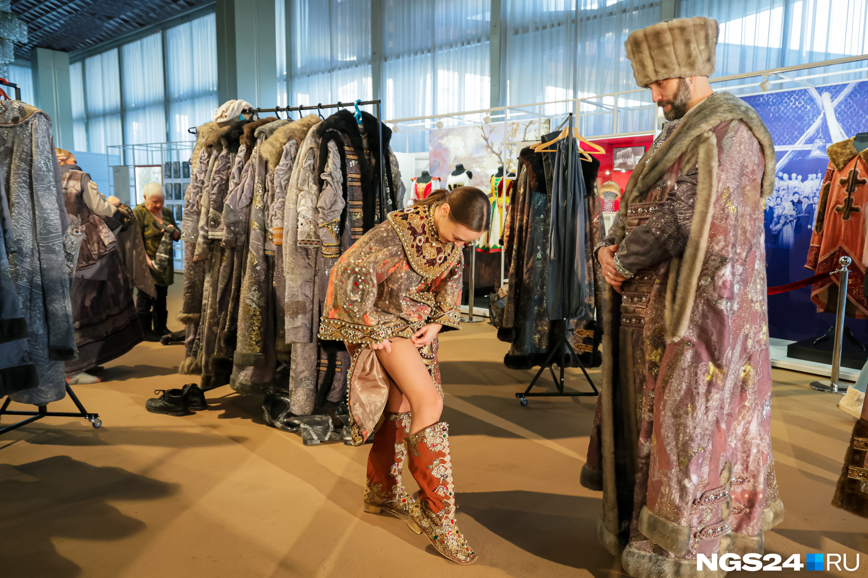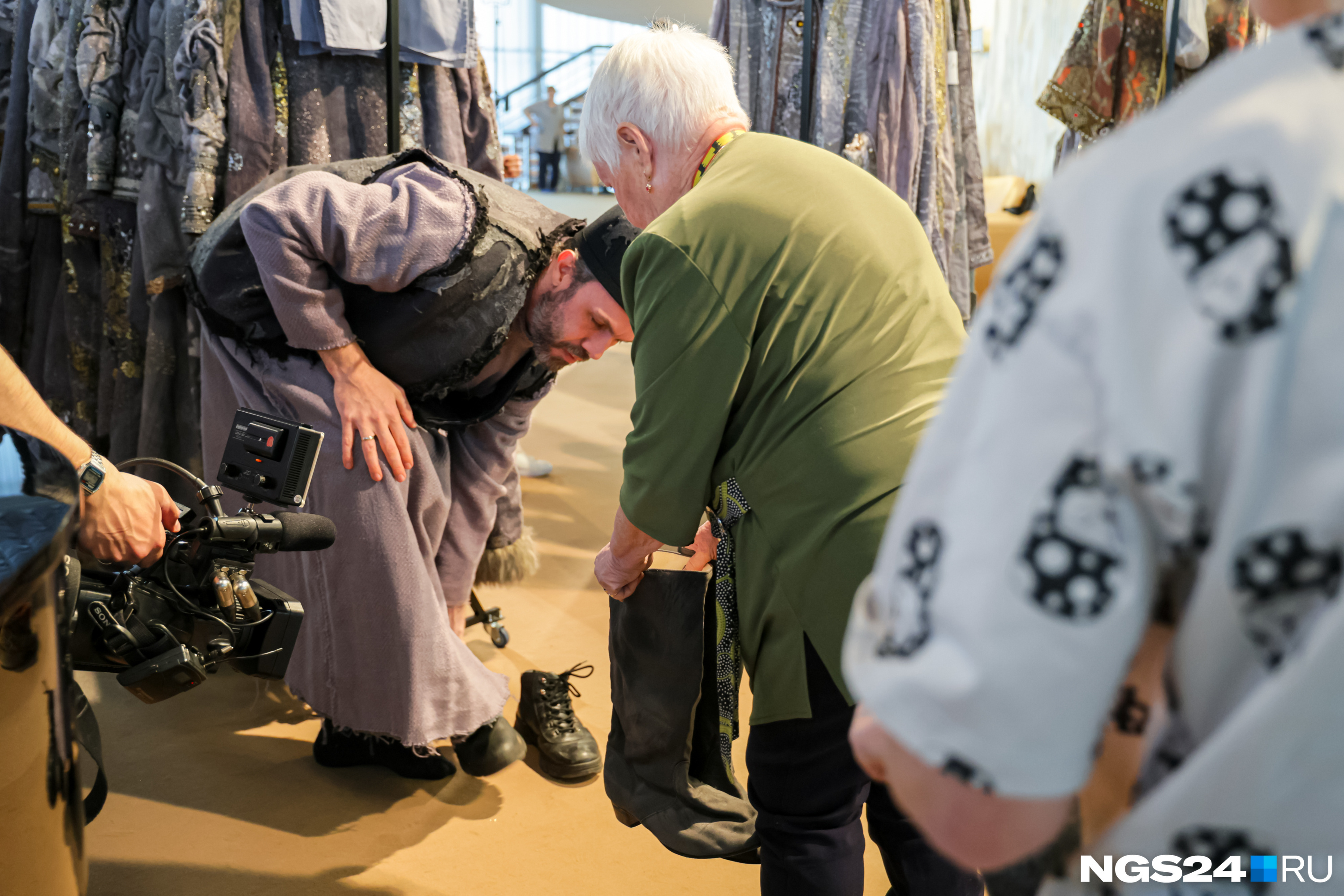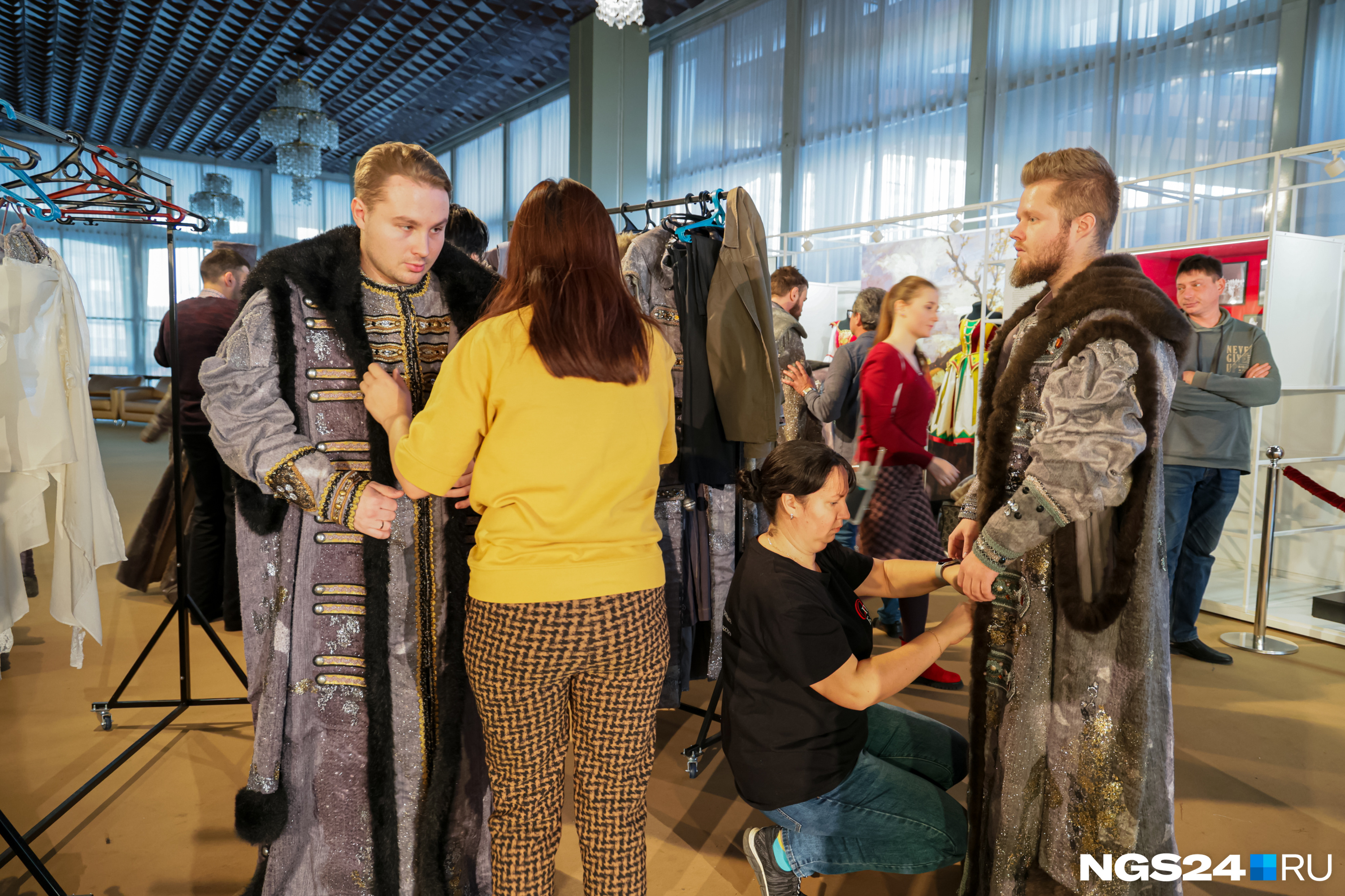 Примерку разделили на два блока: сначала костюмы выдавали солистам, а затем пришел хор. Это первая полноценная примерка, когда артисты надевают и обувь, и шубы. До этого они примеряли отдельные части костюмов, которые при необходимости корректировали по фигуре.