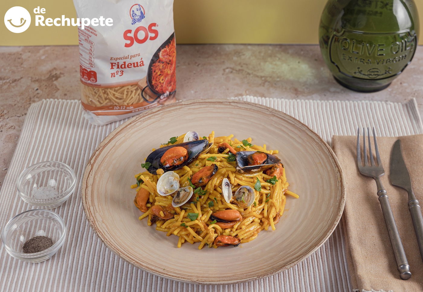 Categorías: Recetas con marisco Recetas de almejas Recetas de fideuá Recetas de mejillones Recetas de pasta Recetas de pescado y marisco Recetas de verano Recetas tradicionales