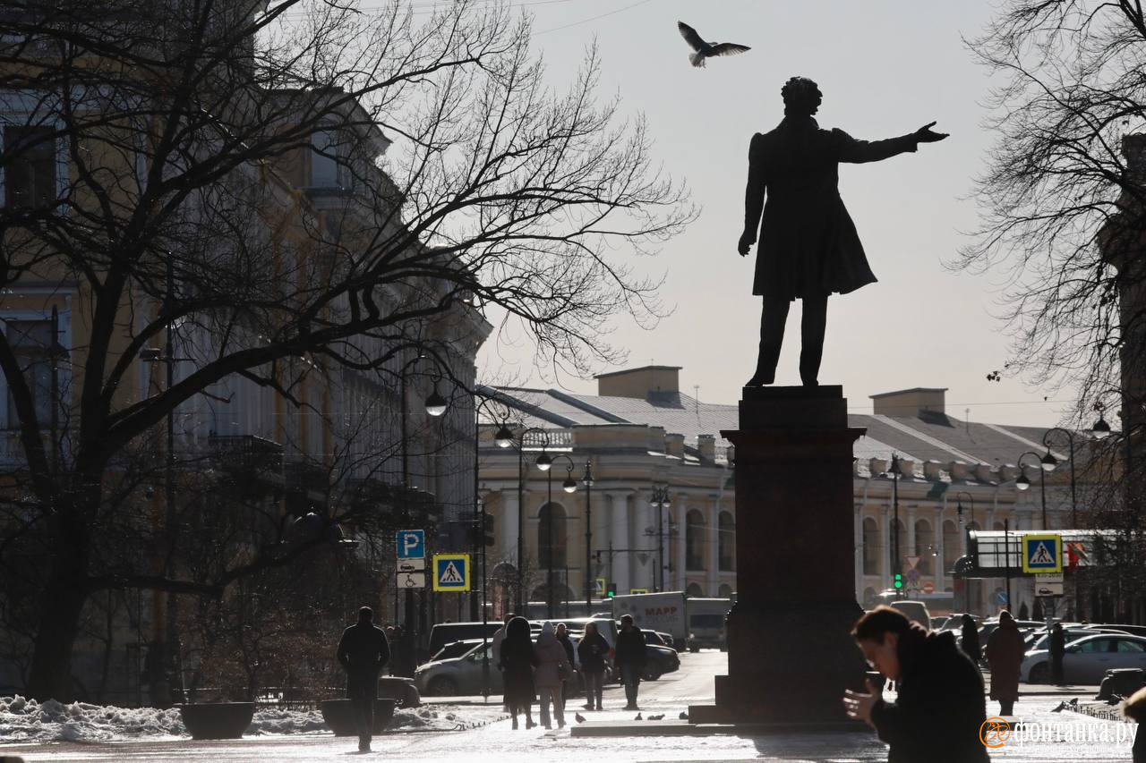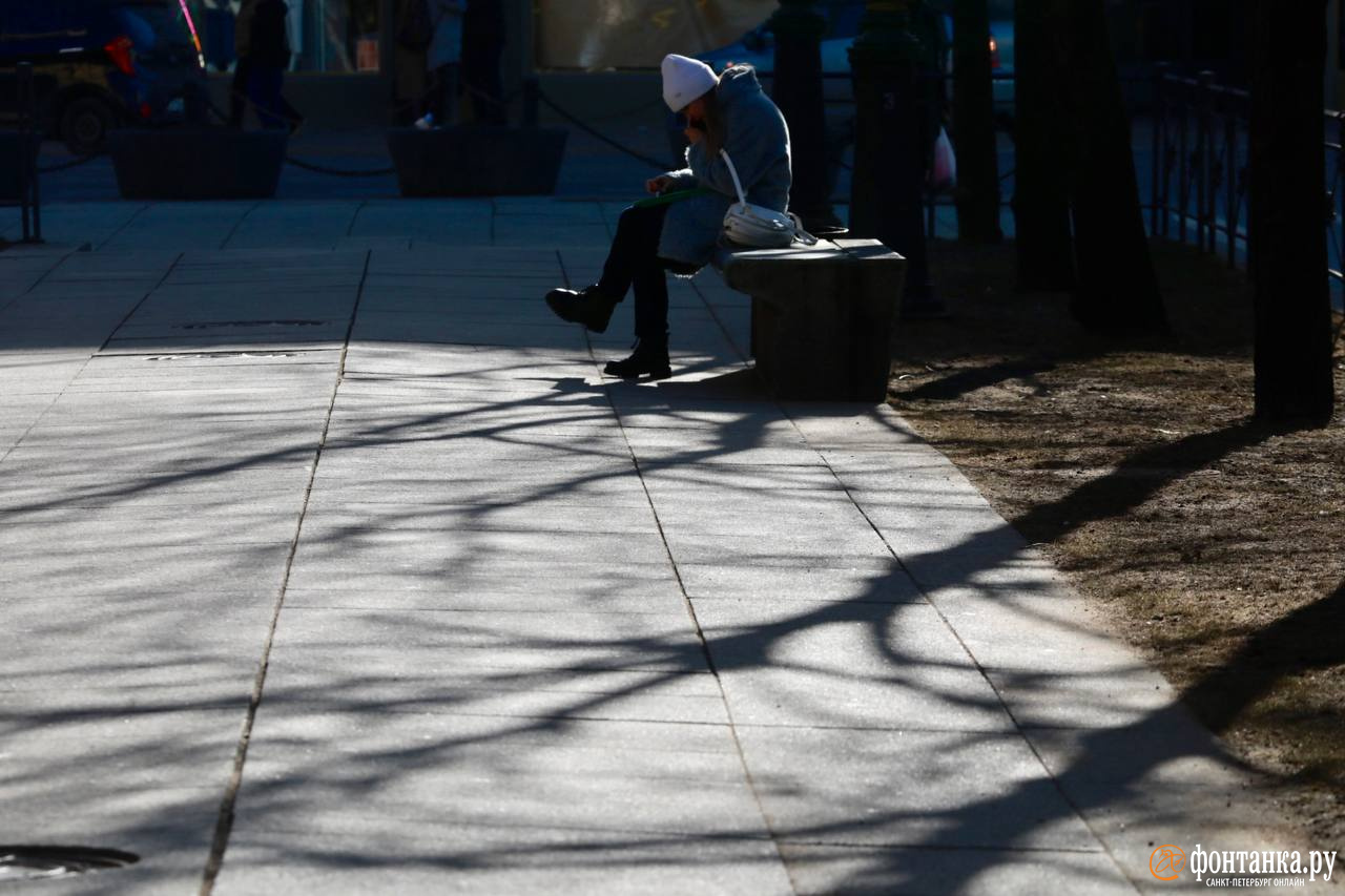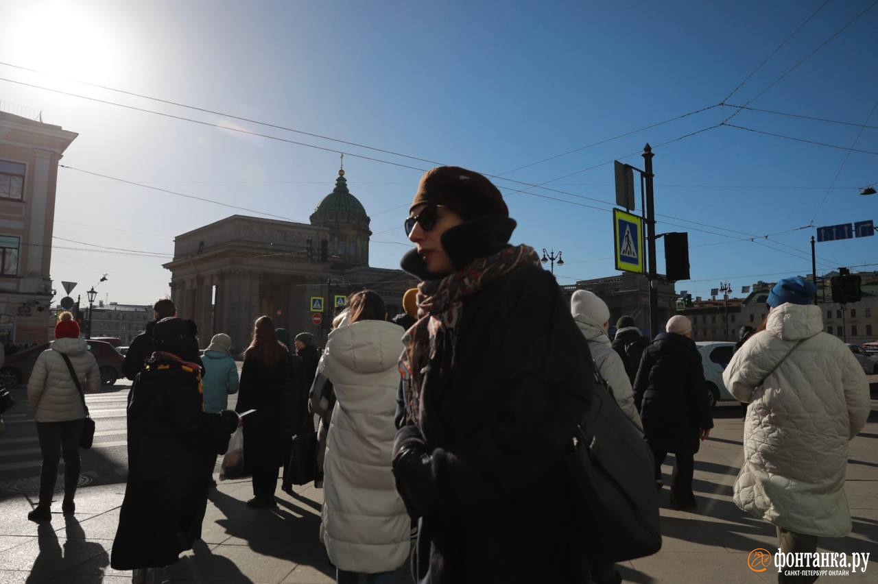 В Петербурге — ранняя весна. Петербуржцы и гости города отказываются от зимней одежды: снега на улицах почти нет, светит солнце. В среду, 6 марта, фотограф «Фонтанки» заснял, как выглядит центр города, залитый солнцем.