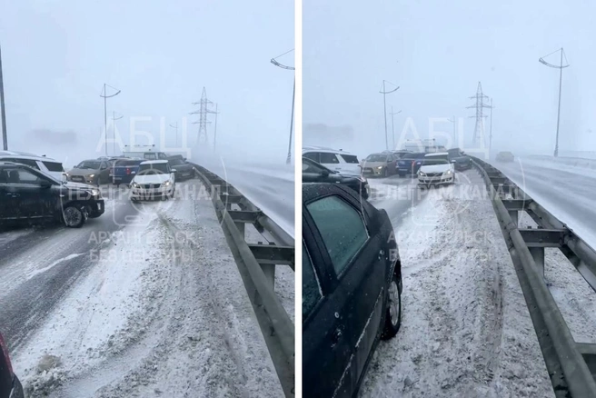 Несколько машин столкнулись на мосту в Северодвинске