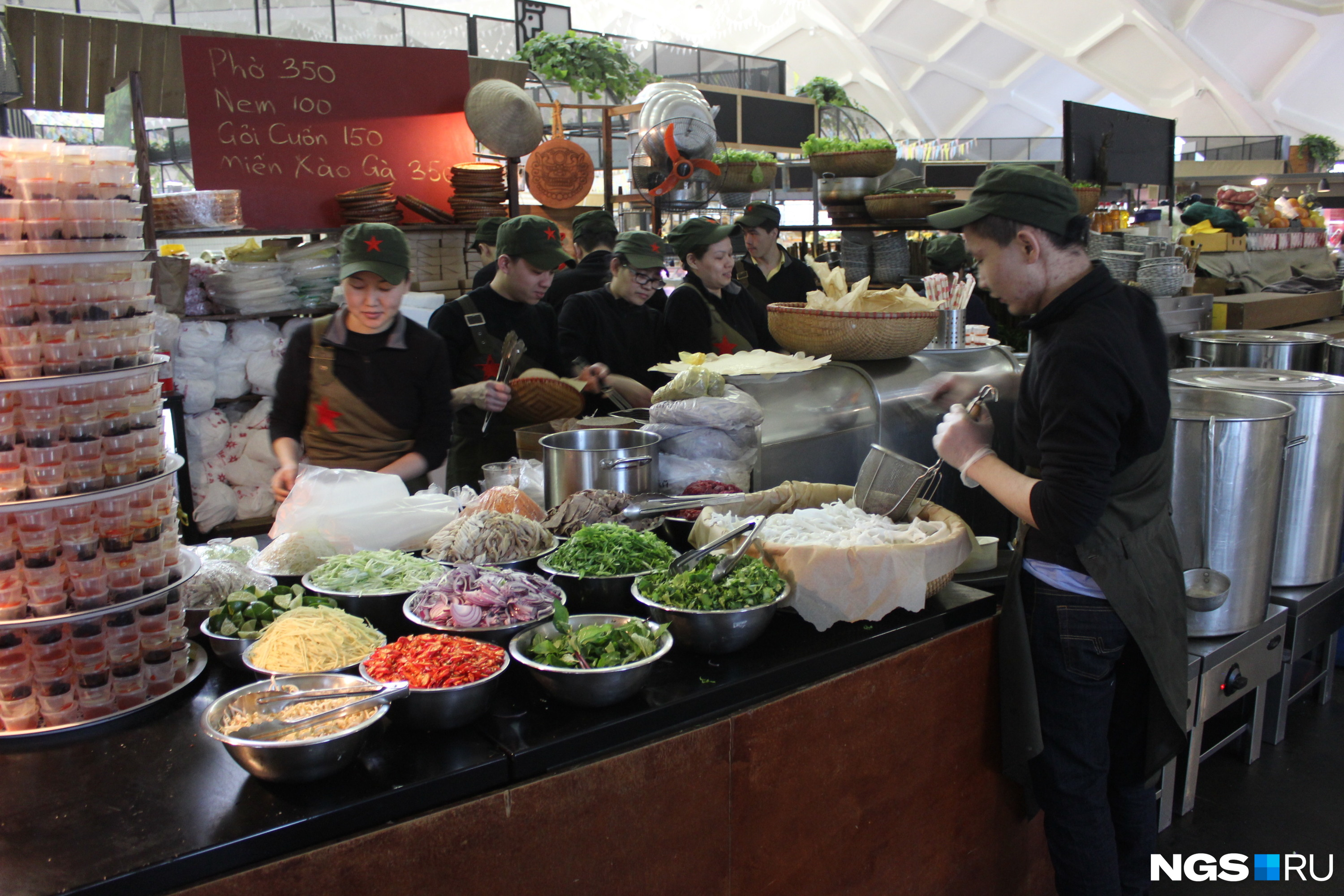 Судя по составу арендаторов, администрация особенно не пытается на него влиять, полагая, что этот выбор должны сделать сами посетители. Поэтому здесь могут не просто появляться точки одной концепции, но и стоять буквально друг напротив друга. Сейчас, например, там шесть чисто вьетнамских заведений.