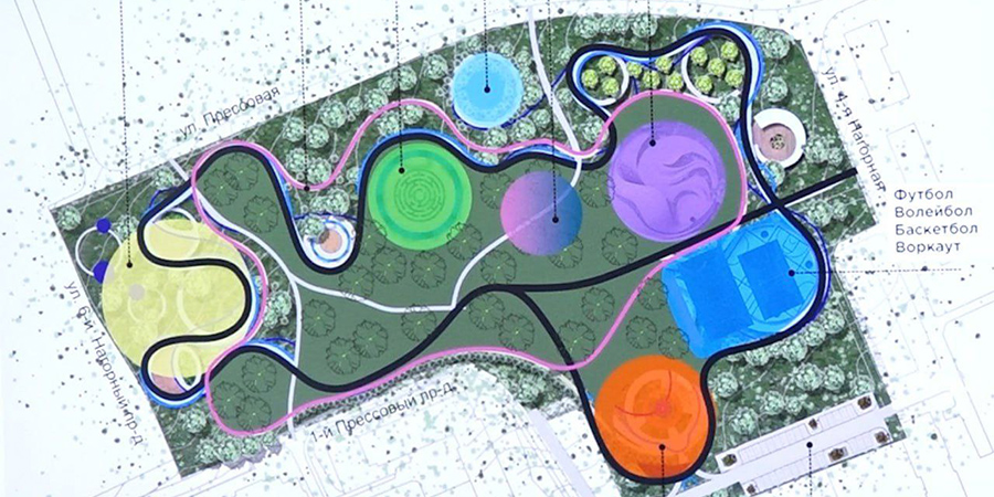 По планам там должны появиться водоемы и ручьи, детские и спортивные площадки, экотропы, амфитеатр и другие объекты.