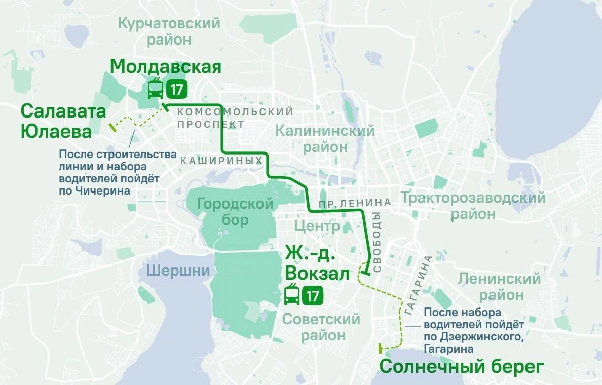 Как рассказали в ОГКУ «Организатор перевозок Челябинской области», троллейбусный маршрут планируют продлить от улицы Молдавской до Салавата Юлаева и от железнодорожного вокзала через путепровод Челябинск-Главный и Гагарина до Солнечного берега.