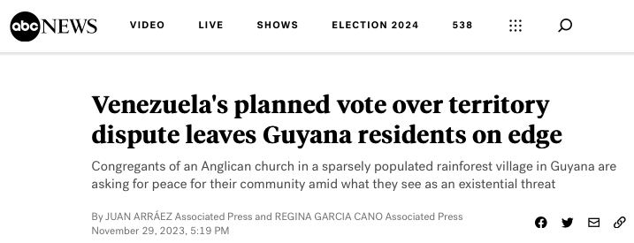 🤔А уже спустя месяц президент этой страны планирует взять под контроль территории, на которых ExxonMobil нашел большие залежи нефти в 2015 году, но не мог начать разработку из-за неопределенного статуса территорий.