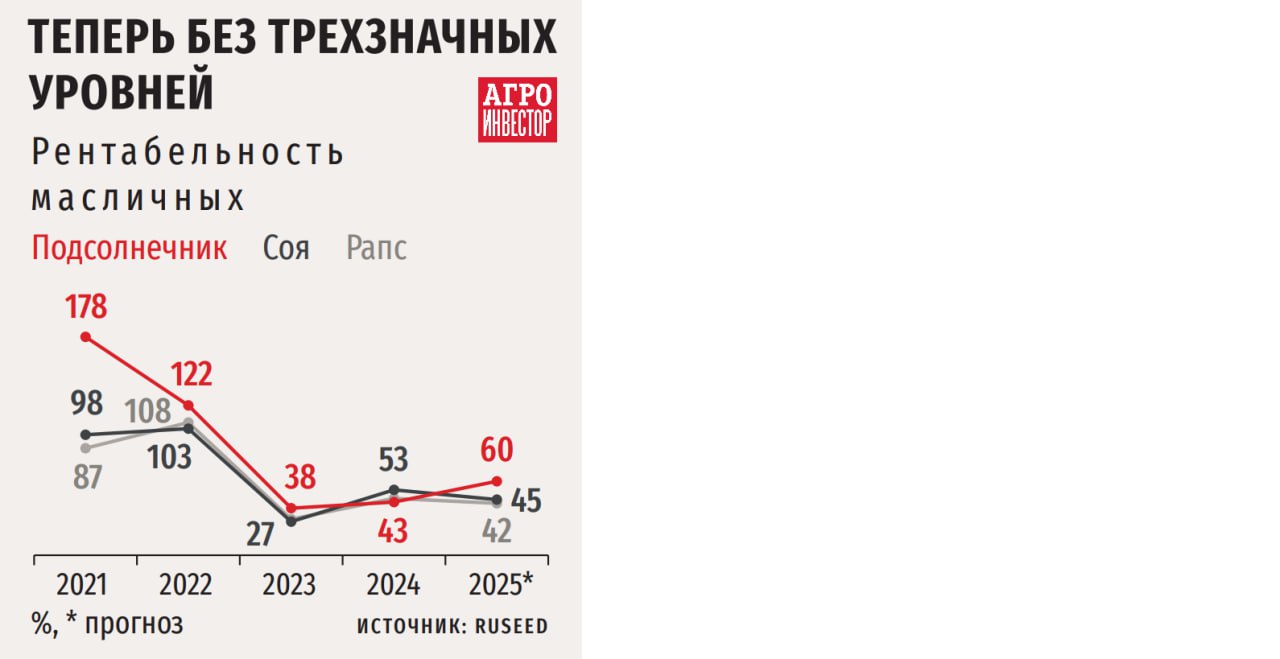 Потому что в растениеводстве рентабельность стала 25-27%. А по ряду культур – соя, рапс и подсолнечник – 40-60%. Напомню, что в машиностроении она 4-6%. Сельское хозяйство и вправду стало второй нефтью России.