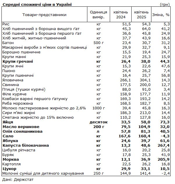 По данным Госстата, за последний год продукты в Украине подорожали на 10–270%. Капуста — плюс 267%, морковь — 206%, яйца — почти 60 грн за десяток. Яблоки, гречка, масло — всё стало роскошью.