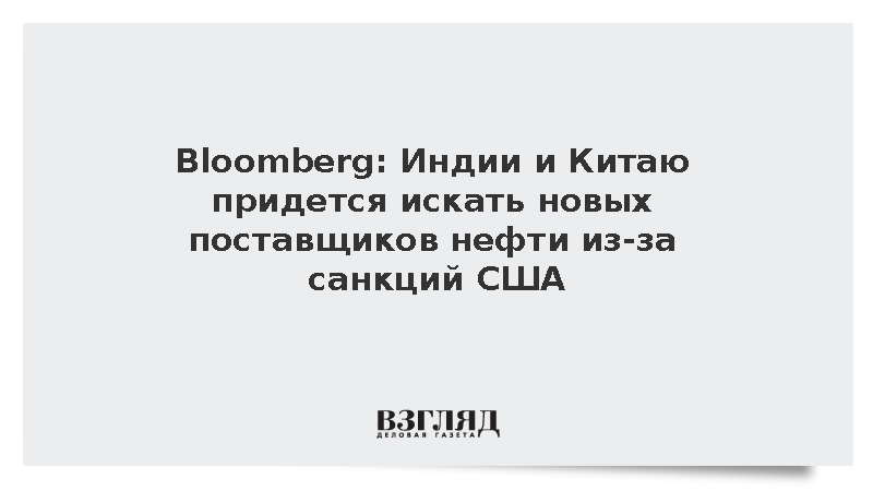 Bloomberg: Индии и Китаю придется искать новых поставщиков нефти из-за санкций США