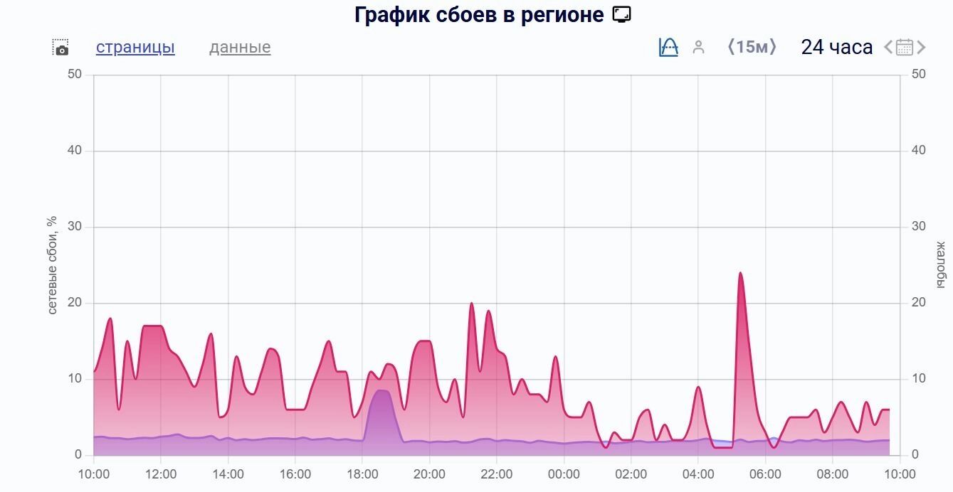 Портал downdetector до сих пор регистрирует жалобы жителей Красноярского края. По состоянию на утро шестого августа, сайт фиксирует 14 жалоб в час и 818 в сутки.