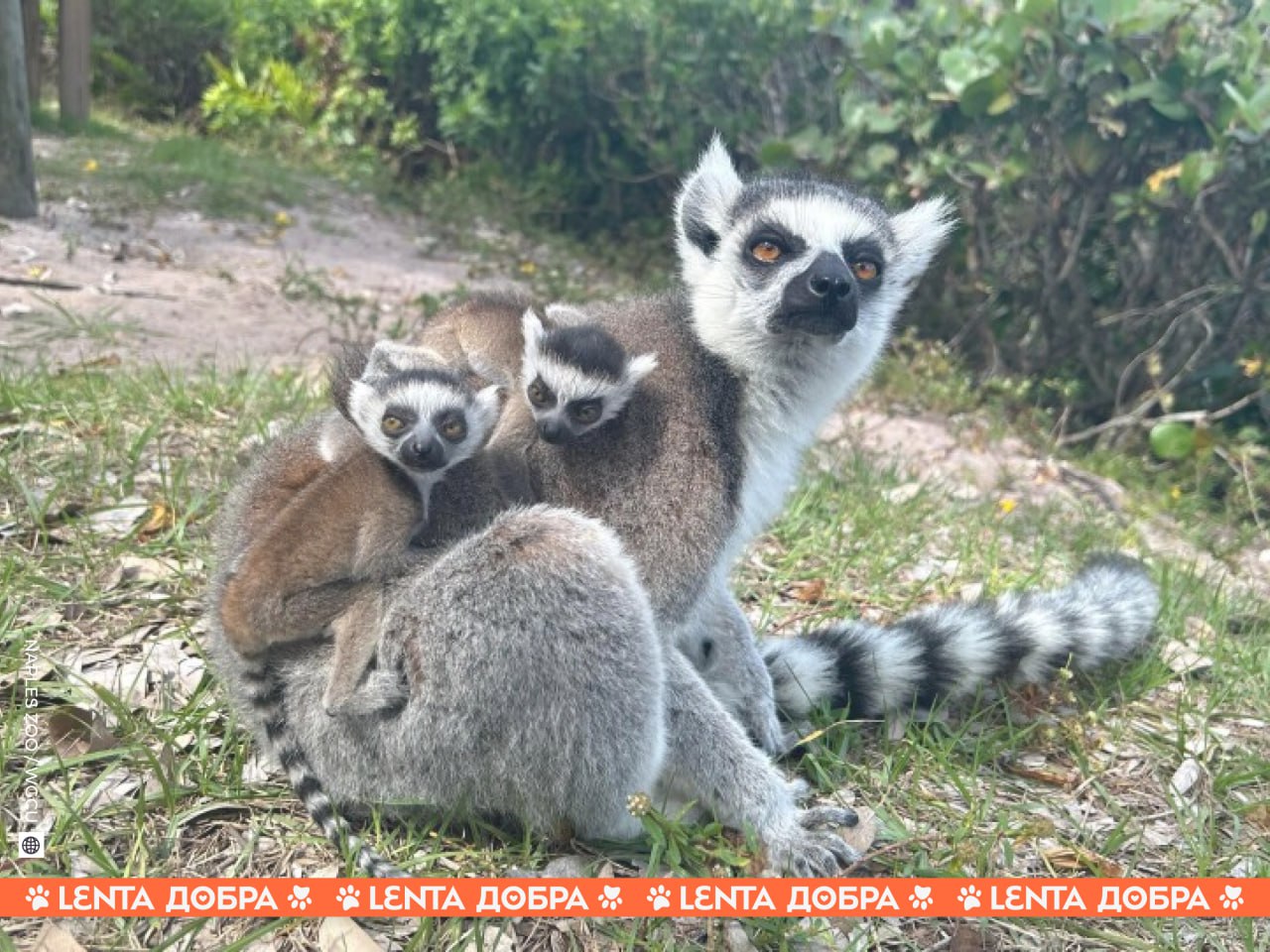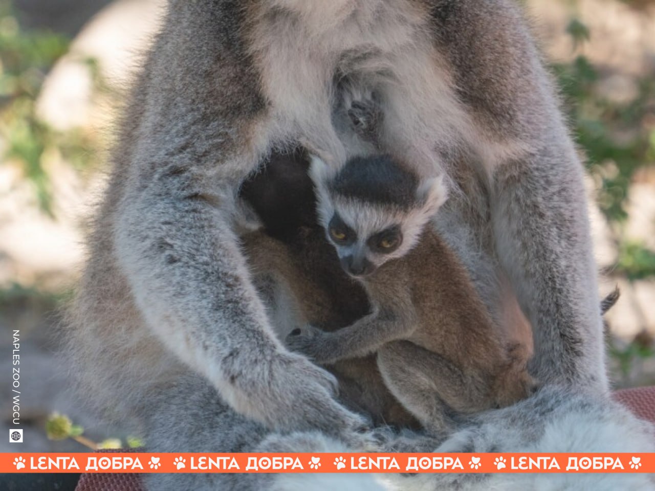 У пары кошачьих лемуров из зоопарка Неаполя родилась двойня. Сейчас малышам всего две недели, заботливая мама ни на секунду не оставляет их. У двойняшек есть старший брат, который помогает родителям воспитывать крох. Их пол пока что неизвестен.